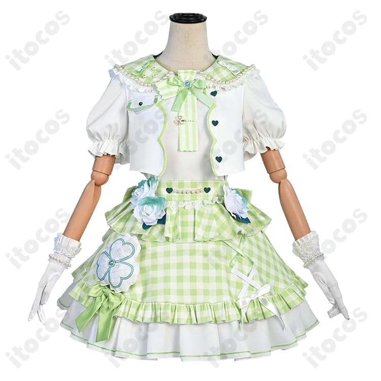 | セット内容 | トップス、スカーフ、スカート、ネクタイピン、腰飾り、背部蝶結び、髪飾り、手首飾り、ブレスレット、手袋、太もも飾り、靴下 |