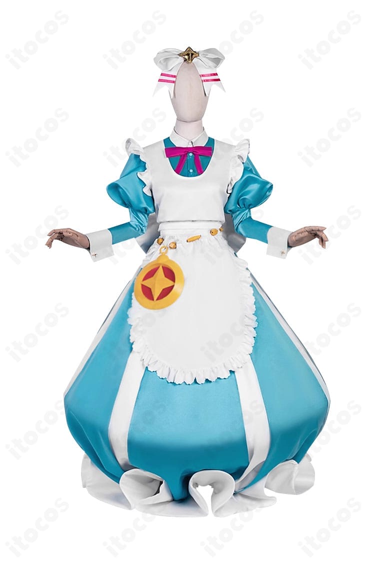 トップス、スカート、エプロン、腰飾り、手首飾り、リボン、背部蝶結び、髪飾り、パニエ